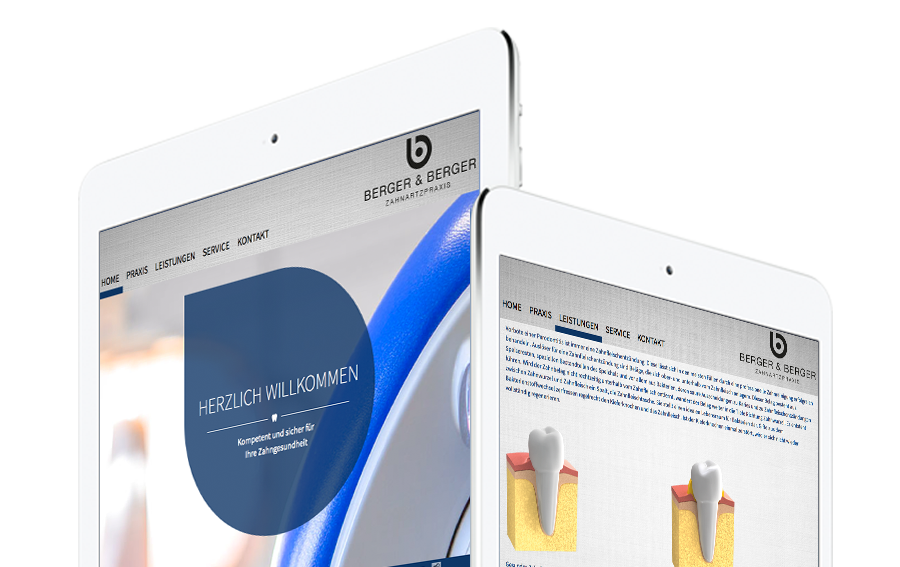 Umsetzung der Internetseite für die Zahnärzte Berger & Berger im Autrag der dentalmedia werbekommunikation GmbH aus Essen.