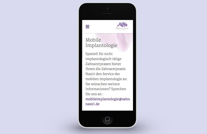 Umsetzung der Internetseite für die Zahnarztpraxis Nasiri aus Düsseldorf im Autrag der dentalmedia werbe-kommunikation GmbH aus Essen.